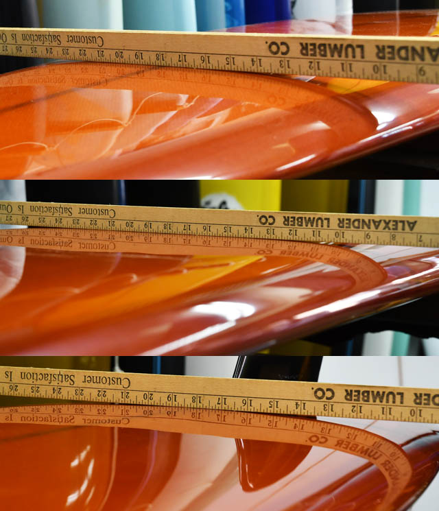 Gloss & polish, cedar stringer, volan, burnt orange tint top & bottom,