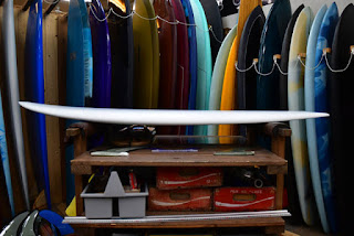 実は昨日入荷したユーズドボード、自分がその場で買わせていただき、入れ替えに新品を買っていただく流れになり、もともと乗りたかった Mitsven 6'8" Double Wing Round-tail Simmons Quad を運良くゲット。もちろんこのボードで海に向かいます。