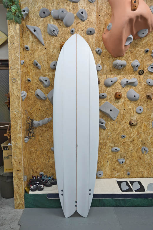 1970年にすでにこのアウトライン&この長さのボードをデザインしシェイプしたウェイン・リンチ、ライディング同様にサーフボード・デザインにおいても天才ですね。もう何年も前のことですが、カリフォルニアのあるハル系のシェイパーが我が家に滞在した際、「このボード、しかも5’10”こそ、まさにアンドレイニがスタビーのモデルにした一本なんだ。」と、かなり衝撃を受けていたのが懐かしいです。その言葉どおり、現在のボードはテールのサイズなどはアップデートされているにせよ、40年も前のショートレングスのボードが現代のスタビー系のアウトラインと大きく違わないなんて、引っ張り出して撮影しながら改めて驚いてしまいました。
