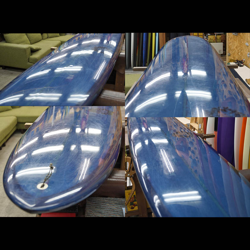 マッカラムの6’0” P エッグです。エッグ系では珍しいビークノーズを持ったチャイムデッキ・デザインで、テールをやや絞ったアウトラインからホローななみにも強そうな一本。マットブラックに自然に溶け込んだアブストラクトが雰囲気あるカラーリングですね。ツインザーフィンではもちろん、マッカラムのカッタウェイ・キールでドライブの効いたツインフィンの乗り味も楽しめます。(フィンは別売りになります)