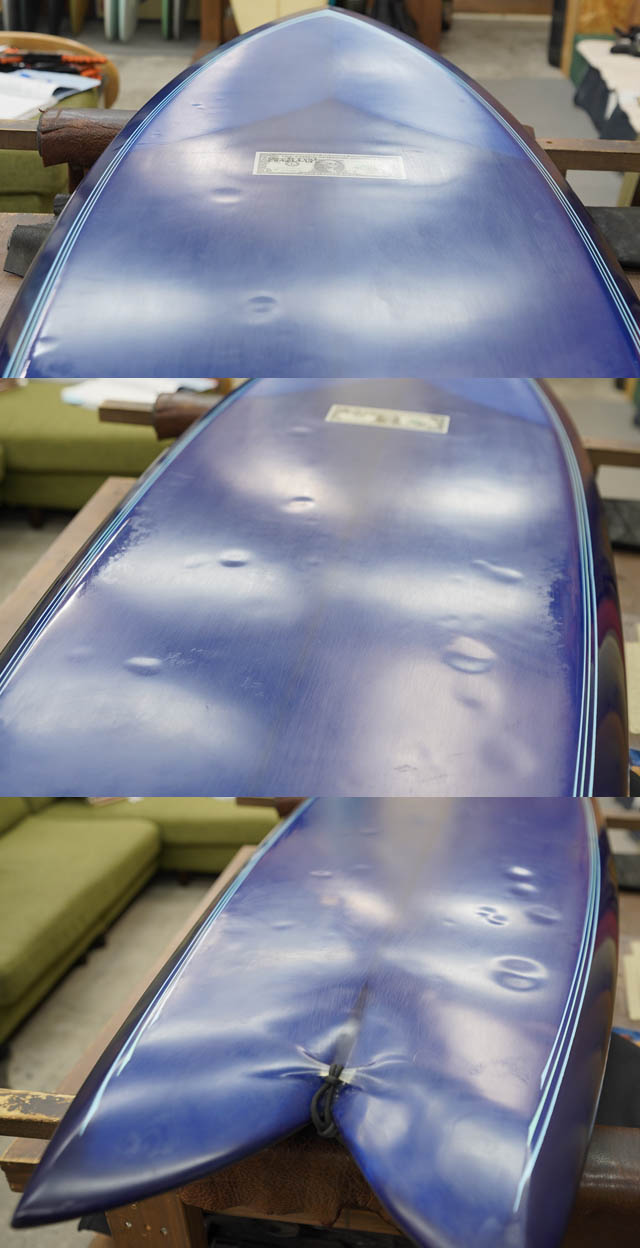マッカラムの6’10”スティンガー・エッグ・ツインザーです。奇才マッカラムのデザイン力、そしてそれを形にすすシェイプ力の奥深さを感じさせてくれる一本。ビークノーズからチャイムデッキのマッカラムらしいデザインのワイド・エッグの下半分に20&1/2”のエッグをアレンジしたデザインなので、テールが絞り込まれ過ぎず、大胆ながらもバランスの良いシェイプになっております。エッジの付け具合やツインザーセッティングからパフォーマンス性も良い感じの一本でしょう。(ツインフィンとしての楽しめます)フィンセットの付属はございません。