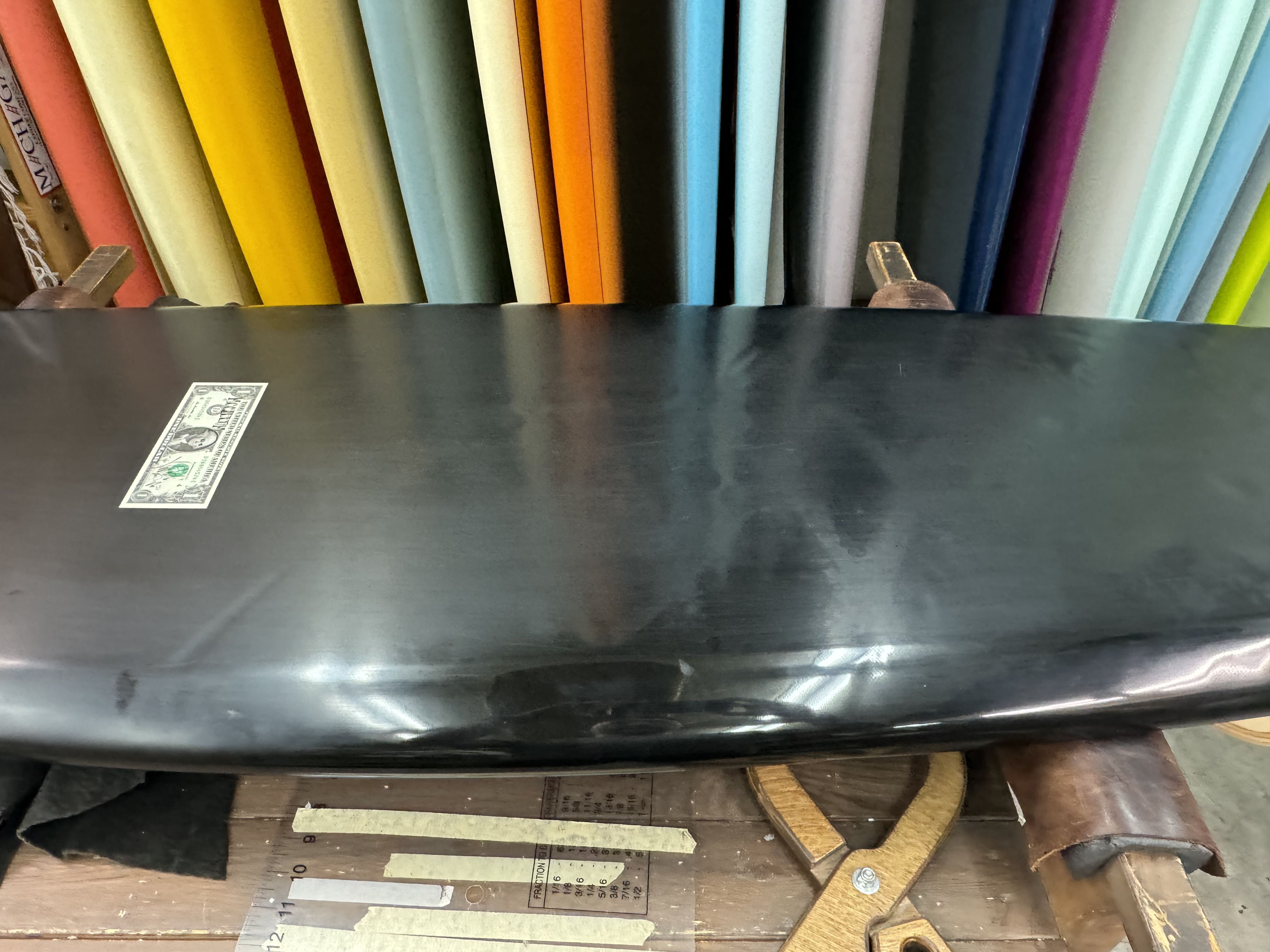 ユーズド、マッカラムの6’6”JMMDツインです。ハルのデザインにツインキールをアレンジした個性的で乗り味の楽しい一本です。まだ使用回数が2回程度なので画像のようなフットマークがある程度、そのほかまだ新品に近い綺麗なコンディションでしょう。ポリッシュに綺麗なストライプ・アブストラクトが映えるボードですね。フィンセットの付属はありません。